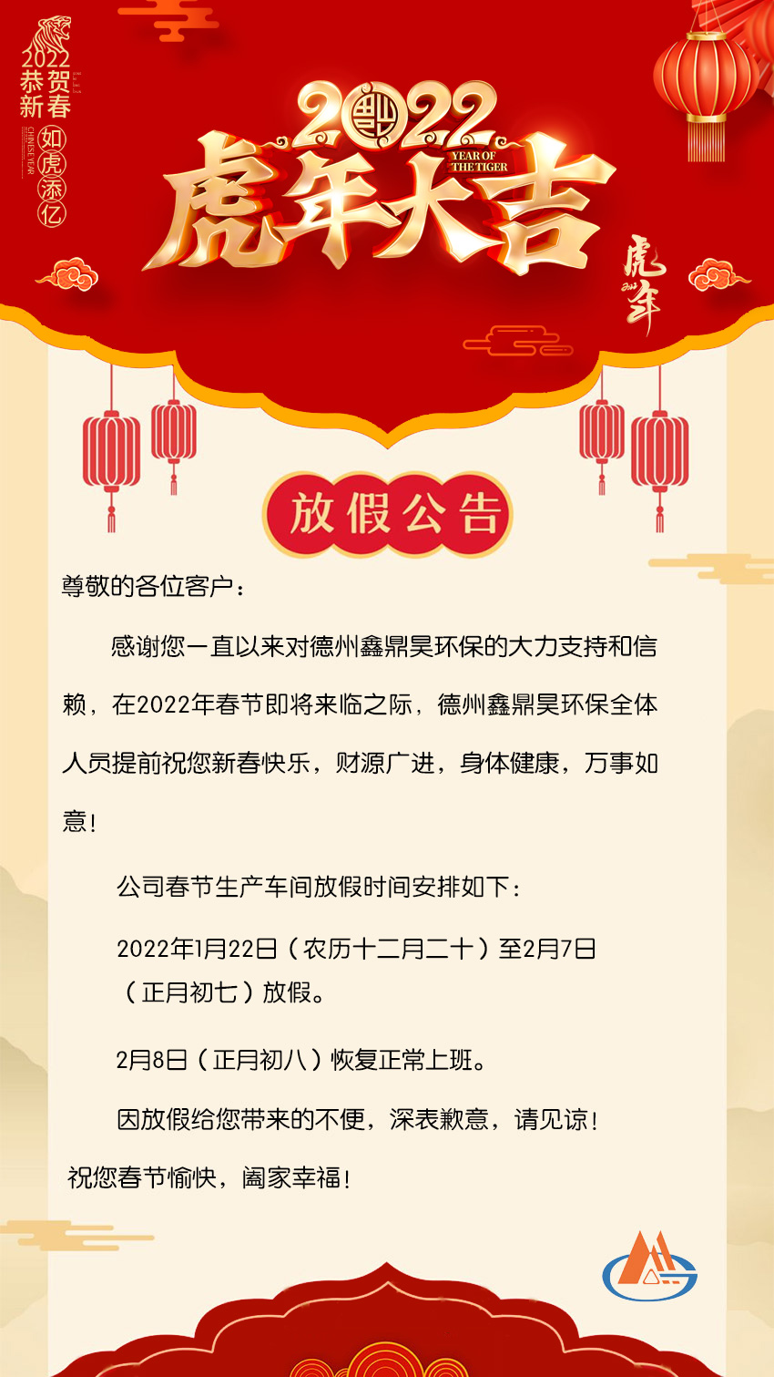 德州鑫鼎昊環(huán)保2022年春節(jié)放假通知